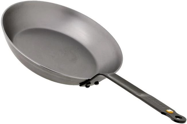 This de Buyer Mineral B Element frying pan is a special pan that is very competitively priced. It is made of carbon steel. A type of steel that is not stainless. That might seem like a drawback, but can work as an advantage through careful use. The pan is solid and heavy. It has no non-stick coating, but one will form automatically as you use the pan. Because the pan has no non-stick coating, it can withstand very high temperatures. Also, you can use steel cookware without worrying about damaging the non-stick coating. These Mineral B Element pans have a thin layer of beeswax on the cooking surface upon delivery. This significantly reduces the chance of corrosion upon delivery. It also helps to flavour the seasoning of the pan, As such the pan is slightly more non-stick right from the start, than the regular Acier Carbone series. It can be used on all cooking hobs. Including induction, and it can even be used in the oven. Do keep in mind that the handle of this pan heats up. Only wash this pan with hot water and a brush. Soap is out of the question and a dishwasher will do irreparable damage to the pan. These pans require special treatment, but when used correctly, they are a pleasure to work with.