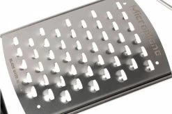 The Microplane Classic Zester is perfect when grating citrus fruits, hard cheese, garlic and chocolate. The handle of this grater is reasonably coarse. As such it won’t easily slip from your hands. Not even when it is wet. The end of the blade contains small rubber feet. These ensure that the grater won’t slip during use. They also make sure scratches do not occur.