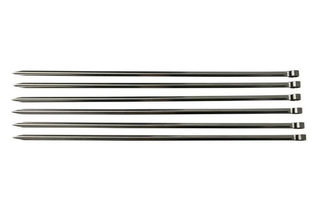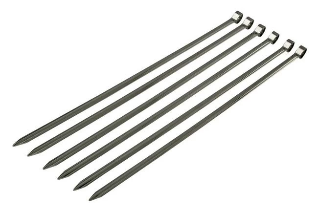 The Tramontina Churrasco BBQ skewers, 40 cm are six long steel skewers that shouldn’t be missing from your next BBQ. The skewers are V-shaped. As such ingredients nicely stay in place. Even when you turn them over. Because they are relatively long these skewers are mostly suited for grilling large pieces of meat, vegetables and fish.
